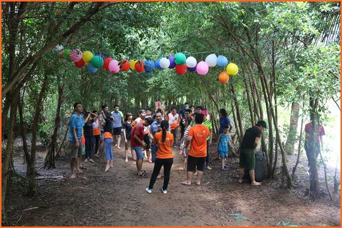 Chưa dừng lại ở đó, để tiếp nối sự kiện 20/10, sáng thứ 7 ngày 21/10 cả công ty lại cùng nhau có chuyến hành trình teambuilding đến khu du lịch Lan Vương tại thành phố Bến Tre. Khu du lịch này sở hữu thiên đường vui chơi giải trí thú vị với không gian rộng lớn, thiên nhiên hoang sơ, sông nước mênh mông và rợp bóng dừa xanh là nơi cực kì thích hợp để tổ chức các trò chơi tập thể cũng như mang lại không khí thư giãn cho mọi người.
