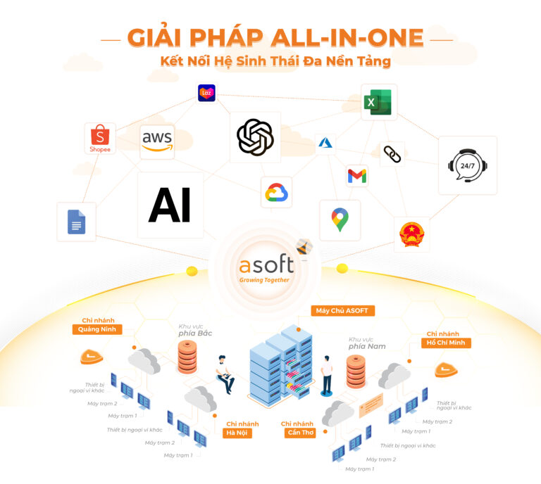 ASOFT-SO còn là nền tảng duy nhất hiện nay kết nối được với toàn bộ hệ sinh thái công nghệ của doanh nghiệp: từ phần mềm kế toán, nhân sự, sản xuất, QA/QC cho đến các nền tảng email, chữ ký số, phần mềm chấm công – tạo thành một hệ thống hợp nhất, dữ liệu liên thông, hạn chế nhập liệu trùng lặp.