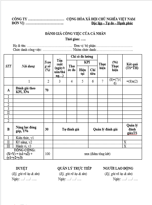 3. Một sốbiểu mẫu bảng đánh giá hiệu quả công việc áp dụng cho mọi doanh nghiệp