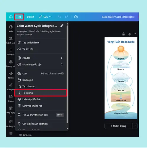 Bước 7: Chọn Tệp > Tải xuống để lưu infographic về điện thoại hoặc máy tính là xong.