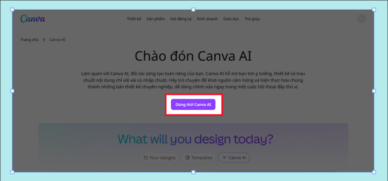 Bước 2: Nhấn chọn Bắt đầu dùng thử Canva AI để truy cập vào công cụ thiết kế bằng AI.