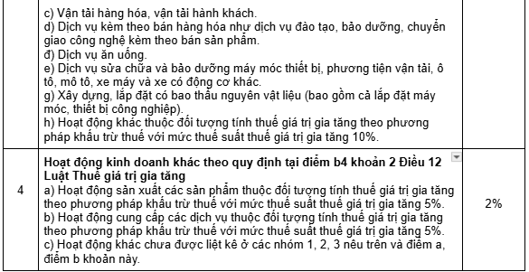 • Sản xuất, vận tải, dịch vụ có gắn với hàng hóa, xây dựng có bao thầu nguyên vật liệu: 3%