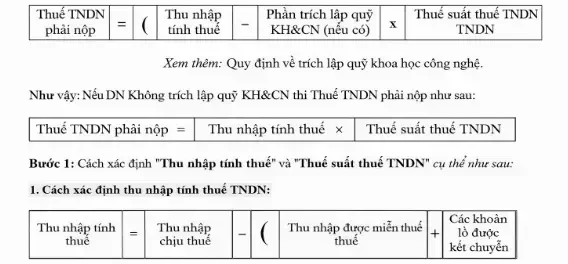 “Số thuế thu nhập doanh nghiệp phải nộp trong kỳ tính thuế bằng thu nhập tính thuế trừ đi phần trích lập quỹ khoa học và công nghệ (nếu có) nhân với thuế suất thuế thu nhập doanh nghiệp.”