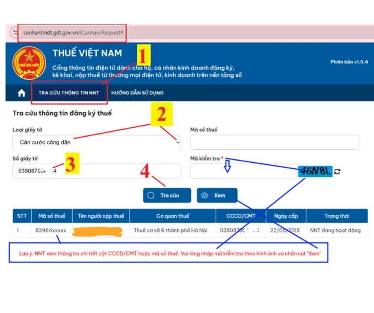 – Tra cứu MST TNCN, thông tin người nộp thuế TNCN trên trang: https://canhanmtdt.gdt.gov.vn/ của Thuế Việt Nam. Trang này dùng CCCD 12 số hoặc chứng minh thư để tra cứu ra mã số thuế 10 số đã được cấp và sử dụng trước ngày 01/07/2025.