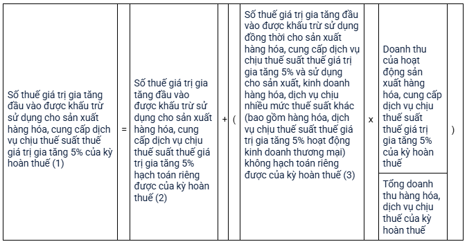 Thuế GTGT 5% và sử dụng cho sản xuất, kinh doanh hàng hóa, dịch vụ chịu nhiều mức thuế suất khác (bao gồm hàng hóa, dịch vụ chịu thuế suất thuế GTGT 5% hoạt động kinh doanh thương mại) không hạch toán riêng được của các kỳ tính thuế trước kỳ hoàn thuế.