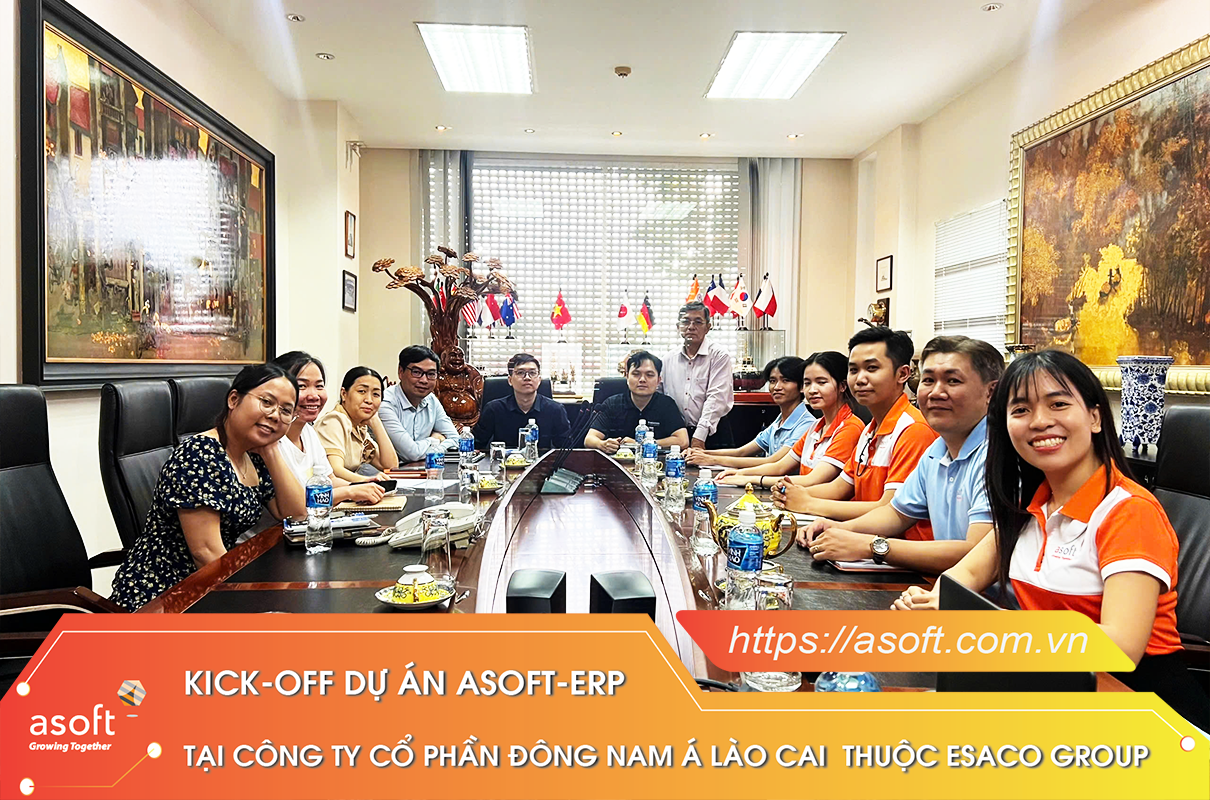 Vừa qua, ASOFT đã tổ chức buổi kick-off triển khai nâng cấp công nghệ Clouds ERP trong ASOFT-ERP tại Công ty Cổ phần Đông Nam Á Lào Cai thuộc ESACO Group, đánh dấu bước khởi đầu quan trọng trong việc tối ưu hóa quy trình quản lý và nâng cao hiệu quả công việc cho công ty.