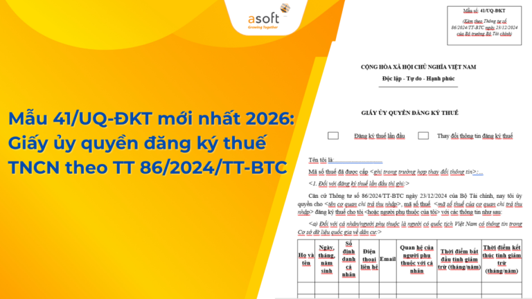 Mẫu 41/UQ-ĐKT theo TT 86/2024/TT-BTC sử dụng đúng giúp ủy quyền đăng ký thuế TNCN nhanh chóng, đúng quy định. Áp dụng mẫu 2026 và chuẩn bị đầy đủ thông tin sẽ giúp doanh nghiệp tối ưu kê khai và hạn chế sai sót.