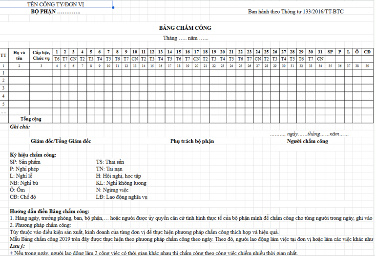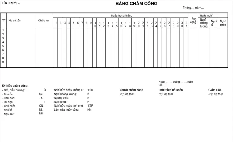 Biểu mẫu bảng chấm công mới nhất năm 2026 – FILE WORD MẪU 2– TẢI NGAY TẠI ĐÂY