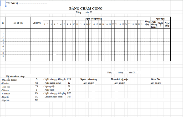 Biểu mẫu bảng chấm công mới nhất năm 2026 – FILE WORD MẪU 1– TẢI NGAY TẠI ĐÂY