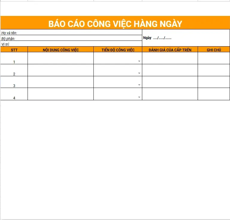 Mẫu báo cáo công việc theo ngày  file Excel