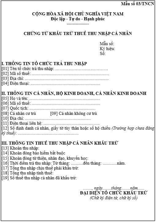 Mẫu chứng từ khấu trừ thuế TNCN điện tử năm 2026