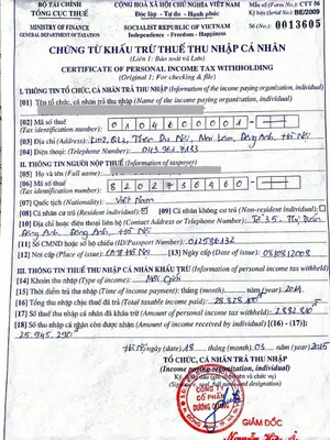 5. Nội dung trên chứng từ khấu trừ thuế TNCN