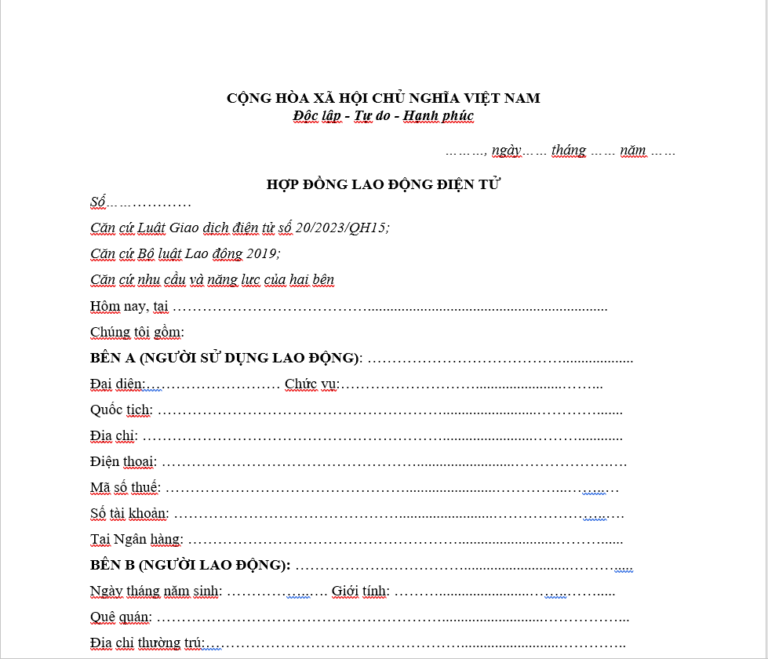 Mẫu hợp đồng lao động điện tử mới nhất năm 2026