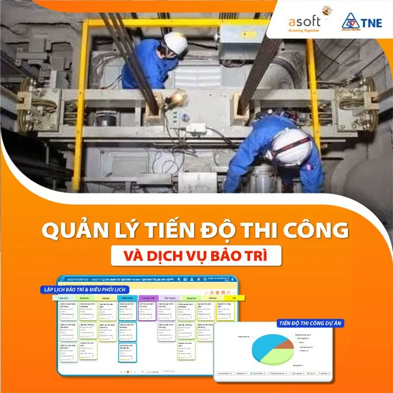 Đối với dịch vụ bảo trì thang máy, ASOFT-ERP số hóa hoàn toàn các hoạt động như lập lịch theo danh sách thống kê khách hàng có lịch bảo trì trong tháng từ đó điều phối điều phối công việc, báo cáo kết quả lắp đặt, bảo trì thang máy thuận tiện, nhanh chóng ngay trên ASOFT SuperApps hoặc hệ thống ASOFT-ERP. Ban lãnh đạo, quản lý Thiên Nam có thể kiểm soát tiến độ & chất lượng công việc bảo trì thang máy của nhân viên tại hiện trường. Nhân viên kỹ thuật thì dễ dàng cập nhật tiến độ bảo trì, chụp ảnh nghiệm thu thang máy và ghi nhận phát sinh nếu có.