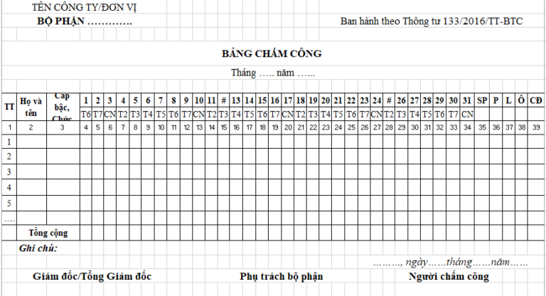 Tổng hợp các biểu mẫu bảng chấm công 2026 mới nhất